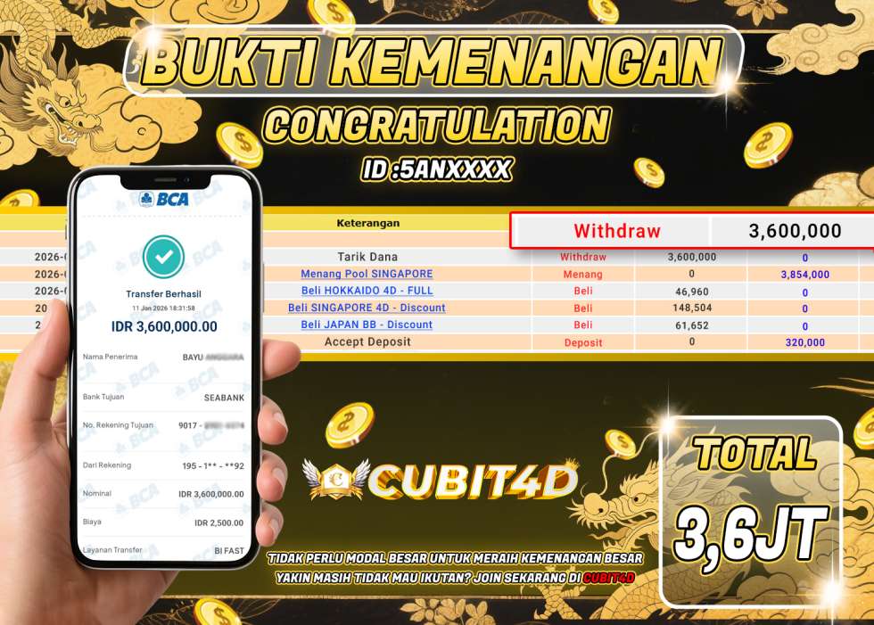 SELAMAT ATAS KEMENANGAN USER ID : 5ANXXXX