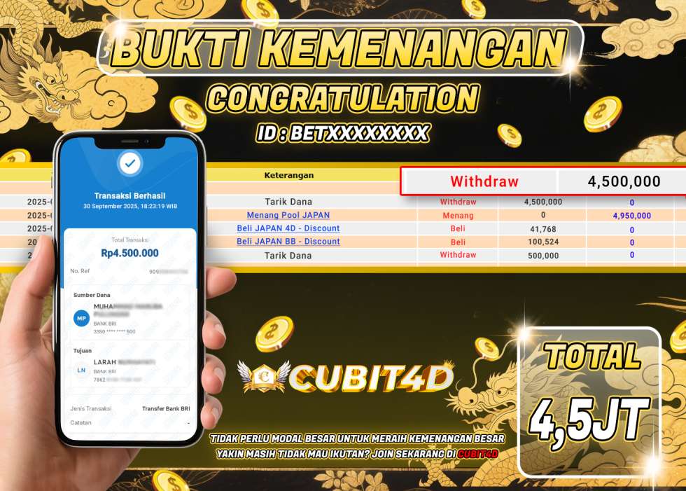 SELAMAT ATAS KEMENANGAN USER ID : BETXXXXXXXX
