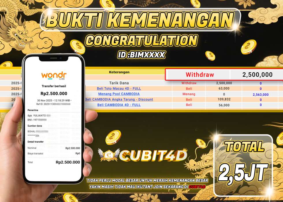 SELAMAT ATAS KEMENANGAN USER ID : BIMXXXX