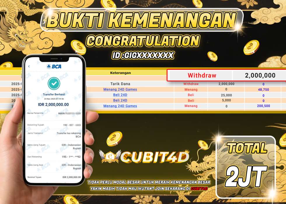 SELAMAT ATAS KEMENANGAN USER ID : GIGXXXXXXX