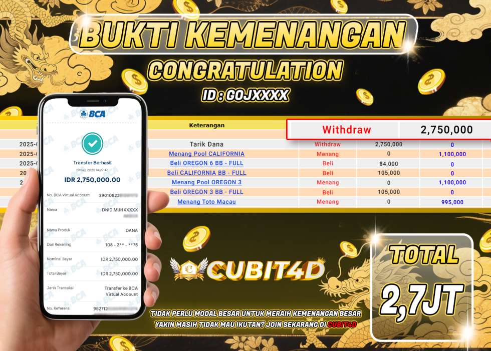 SELAMAT ATAS KEMENANGAN USER ID : GOJXXXX