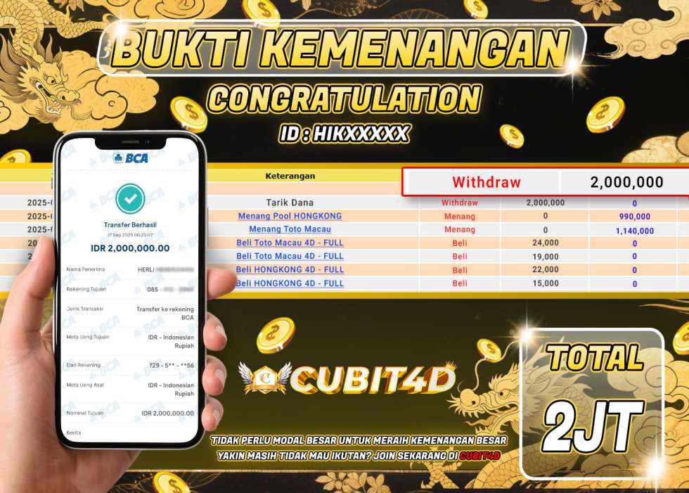 SELAMAT ATAS KEMENANGAN USER ID : HIKXXXXX