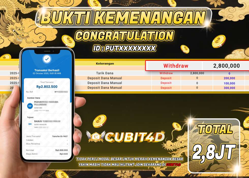 SELAMAT ATAS KEMENANGAN USER ID : PUTXXXXXXXX