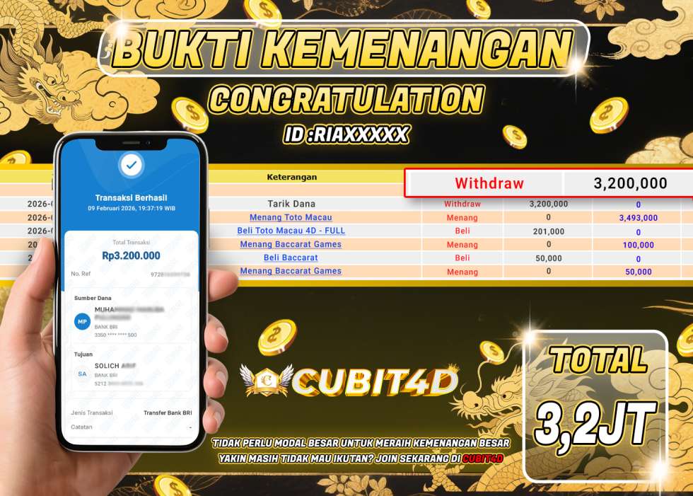 SELAMAT ATAS KEMENANGAN USER ID : RIAXXXXX