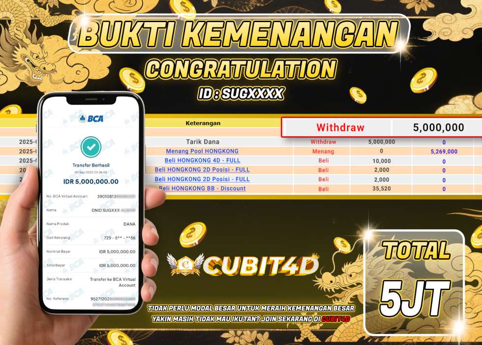 SELAMAT ATAS KEMENANGAN USER ID :SUGXXXX